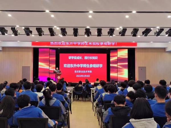 3月8日,怀宁东升中学的120余名师生到德赢官网开展参观研学活动。同学们通过聆听讲座、参观体验德赢官网的教学和实训场地,详细了解德赢官网各专业的建设情况介绍,帮助他们树立初步的职业生涯规划。