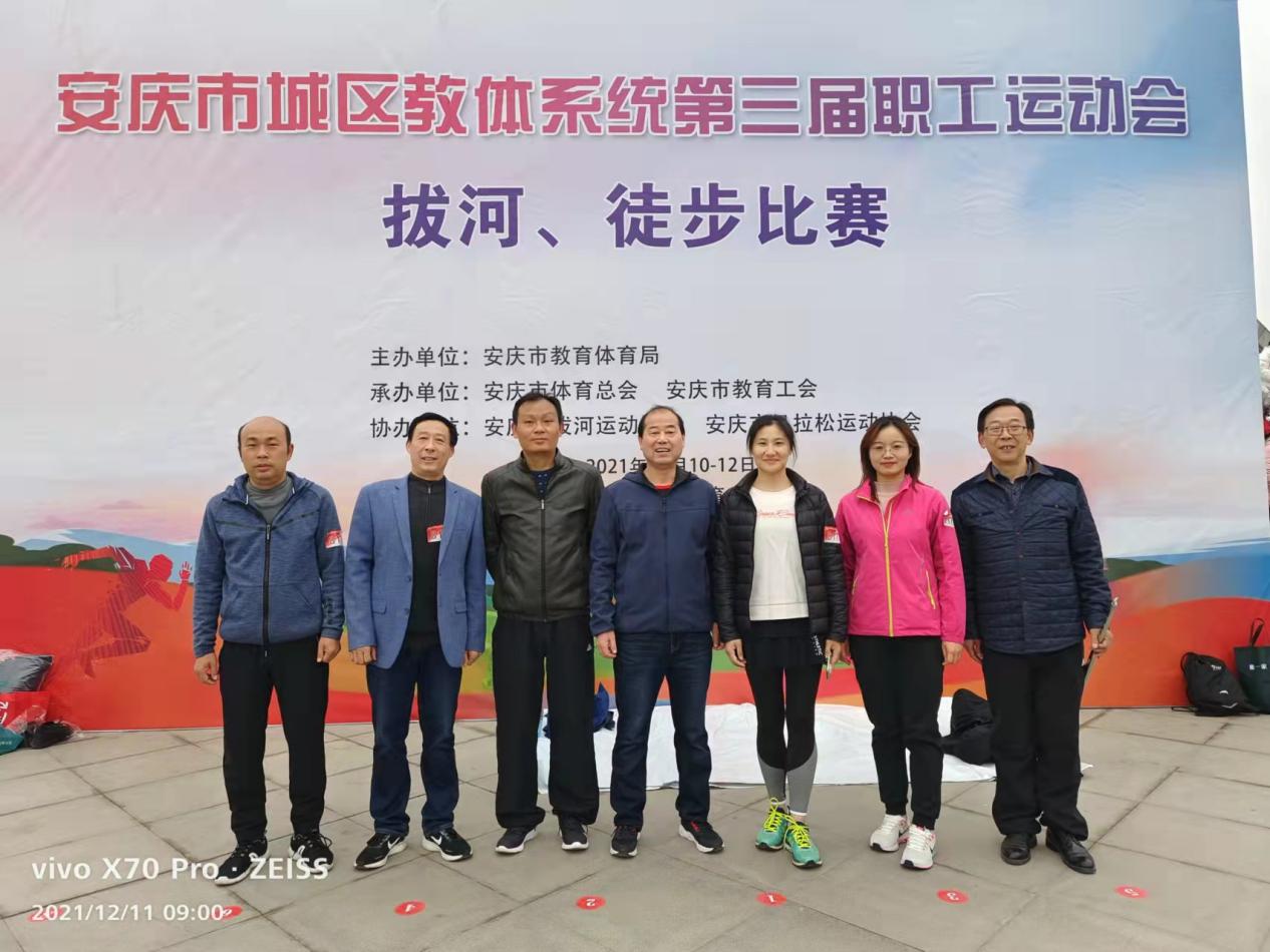 12月11日--19日安庆市城区教体系统第三届职工运动会于在九牧体育馆举行。德赢官网工会积极响应全民健身号召,开启职工户外运动模式,按照《安庆市城区教体系统第三届职工运动会竞赛规程总则》要求,组队参加“乒乓球、羽毛球、拔河、徒步”全部项目的比赛。校党委书记童宏葵,副书记、校长毕明生带队参加。
