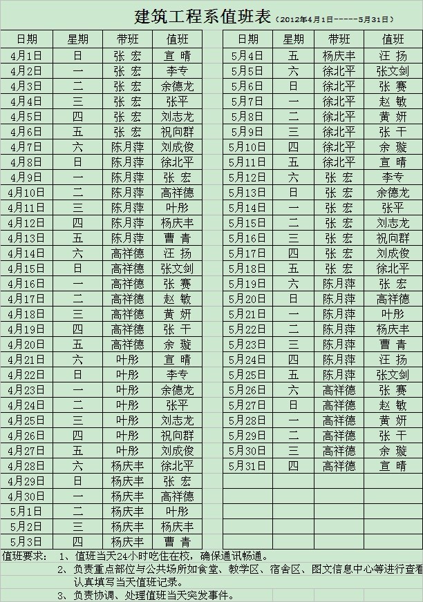 2011-2012学年度第二学期建筑工程系教学值班安排表
