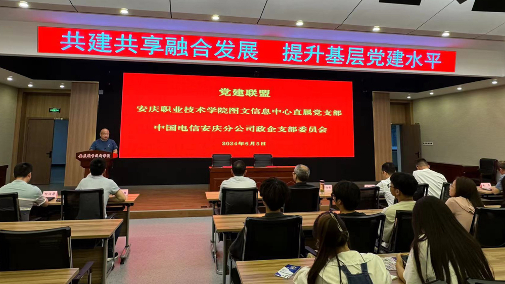 6月5日下午,在图文信息中心三楼学术报告厅图文信息中心直属党支部与安庆电信公司政企党支部共同举办党建联盟活动,活动以“共建共享融合发展,提升基层党建水平”为主题,图文信息中心直属党支部全体党员、安庆电信公司政企党支部部分党员和德赢官网学生近200人参加活动。