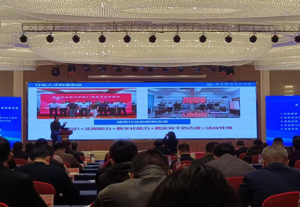 会上,德赢官网建筑工程学院金飞老师代表学院做题为《产教融合谋发展,校企协同育英才》的推介报告,他从“我们有什么?我们能做什么?”两方面,介绍了德赢官网建筑工程学院的专业特色、团队优势和实训条件,以及该院如何优先为本地行业企业提供人才支撑,满足行业企业不同培训需求,以及校企联合开展新技术新工法攻关等。金飞老师的推介与交流,得到与会企业的高度关注和积极回应。