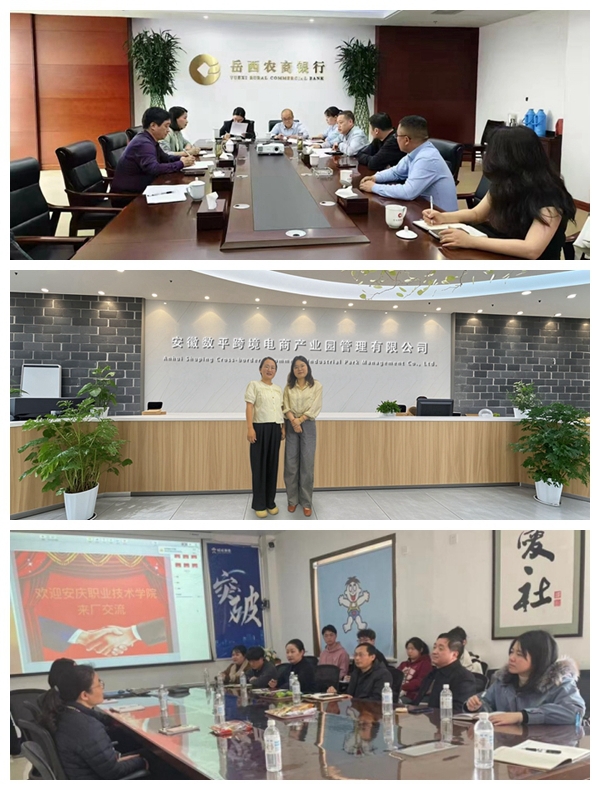 为做好2025级人才培养方案修订工作,4月22日至5月10日期间,现代商务学院组织专业负责人带领团队教师赴安徽岳西农村商业银行股份有限公司、安徽天鹅科技实业(集团)有限公司、国汽大有时空科技(安庆)有限公司、安徽环丰物流有限公司、安庆旺旺食品有限公司、安徽省一品鲜菇业有限公司、安徽数平跨境电商产业园管理有限公司、安徽云霁电子商务有限公司等多家省内企业开展调研论证。